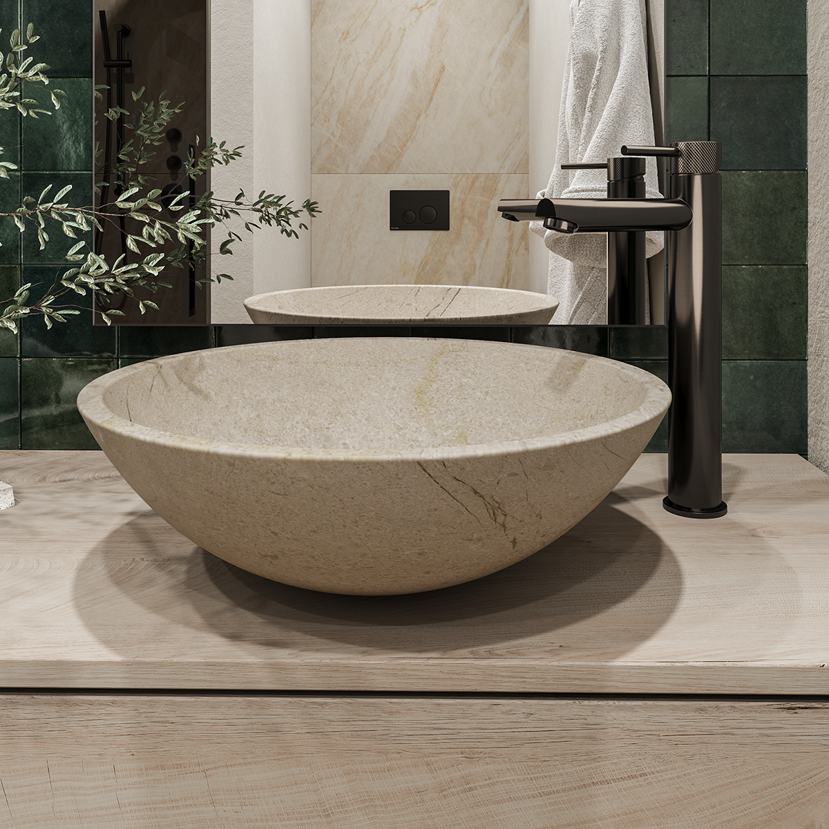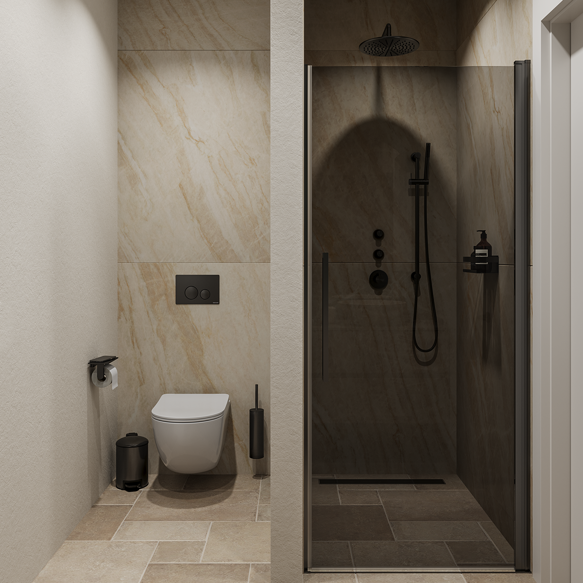 Every bathroom at Luna Nova has been imagined as a retreat, a place where the rhythm of the day slows, and you can focus entirely on yourself. Porcelain tiles, natural wood, and designer finishes in soft Gun Metal tones create an atmosphere of elegance and calm.