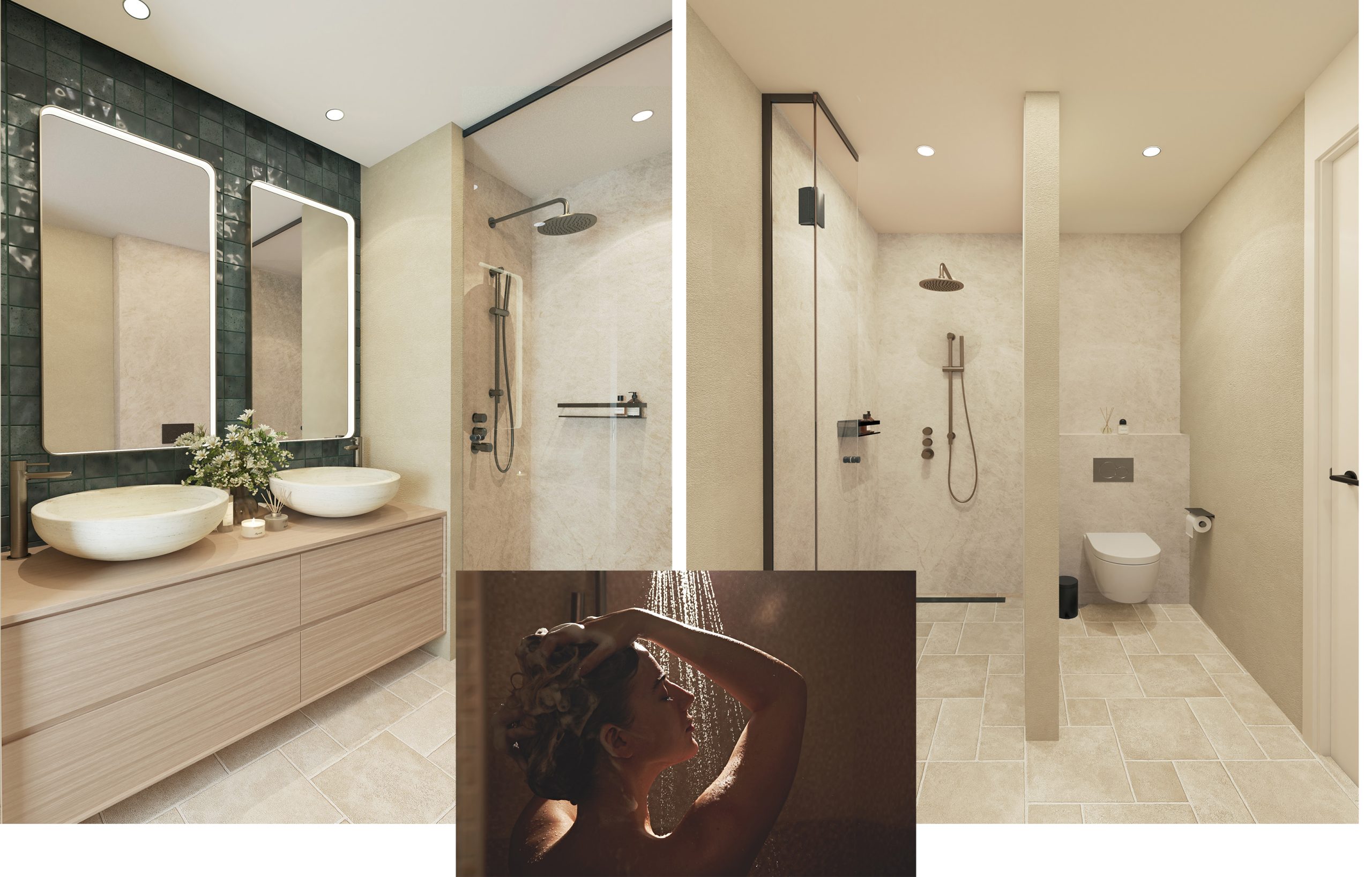 Every bathroom at Luna Nova has been imagined as a retreat, a place where the rhythm of the day slows, and you can focus entirely on yourself. Porcelain tiles, natural wood, and designer finishes in soft Gun Metal tones create an atmosphere of elegance and calm.