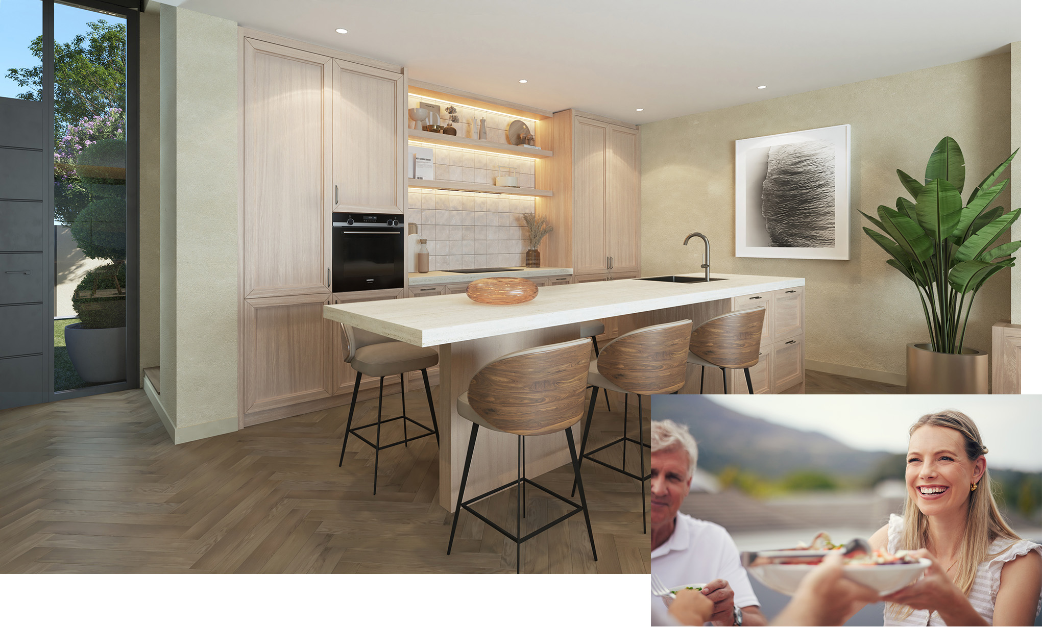 A kitchen is more than a place to cook, it is the heart of the home, where moments are created and shared. At Luna Nova, kitchens are designed to inspire connection: elegant grey oak cabinetry, stone countertops that invite touch, and Siemens appliances ready for everything from quiet breakfasts to long evenings of laughter with friends.